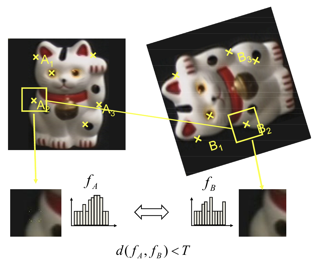 ์ด Descriptor๋ ์ง์ญ์ ์ธ ํน์ฑ์ ๊ฐ์ง๊ณ ์๊ธฐ ๋๋ฌธ์ ๋น์ทํ ํํ๋ฅผ ํํํ๋ descriptor๋ ๋น์ทํ ๋ฒกํฐ๋ก ํํ๋๋ค.